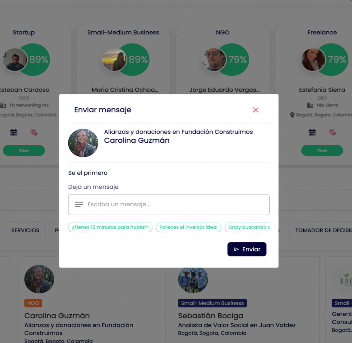 algoritmo IA para visualizar el porcentaje de compatibilidad entre los usuarios para oportunidades de negocio.