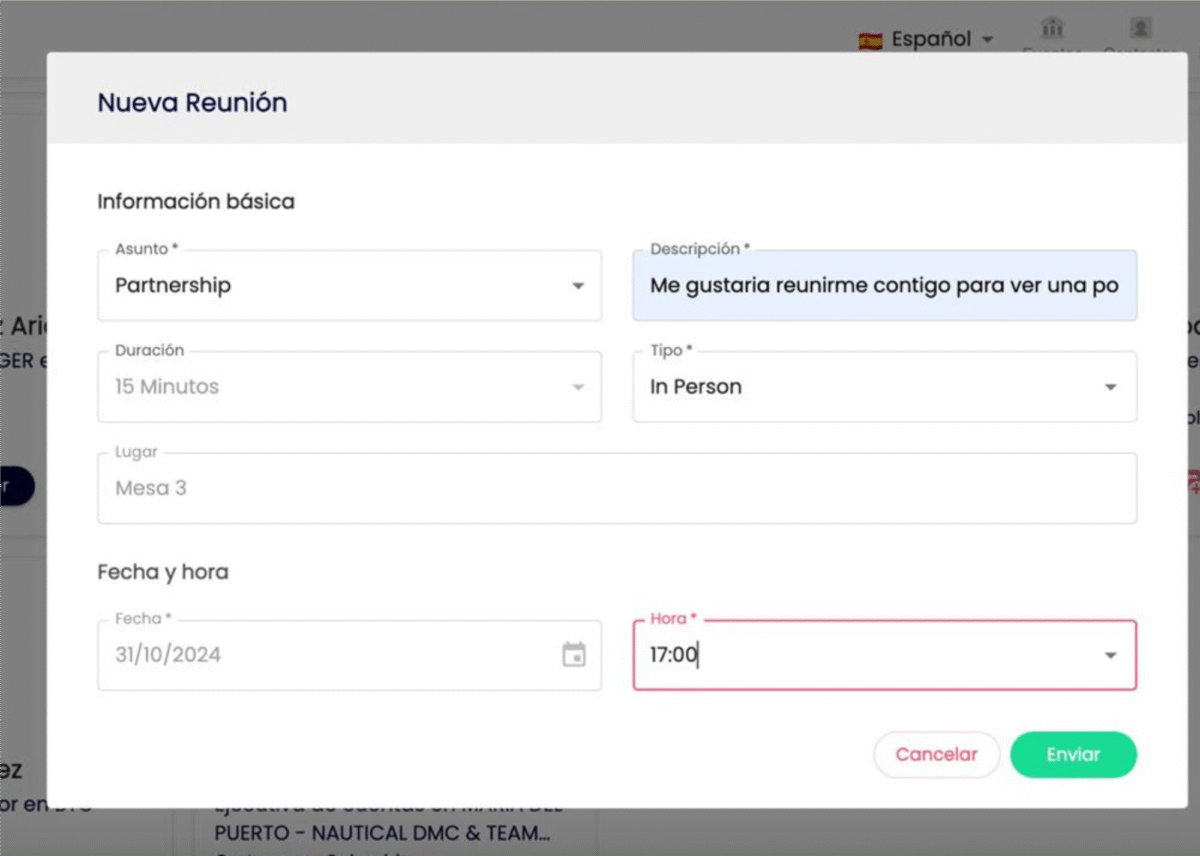 facilita la comunicación entre los usuarios, permitiendo iniciar chats, agendar reuniones y videoconferencias directamente dentro de la plataforma.